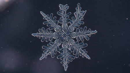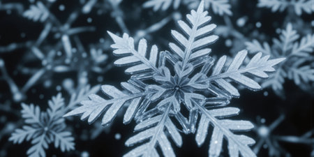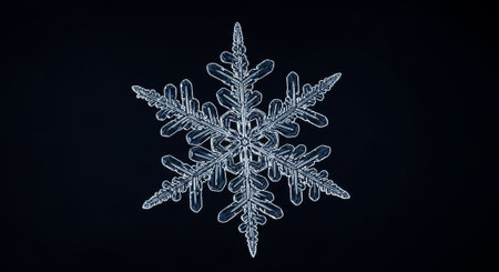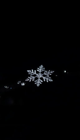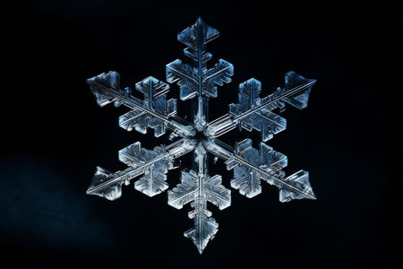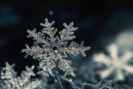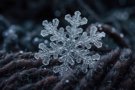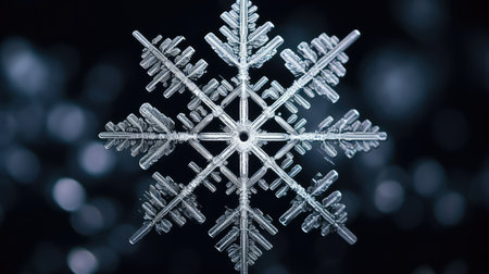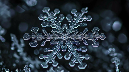 Capture the beauty of an intricate snowflake against a dark background. This macro image highlights the delicate details and unique patterns inherent in nature during wintertime.