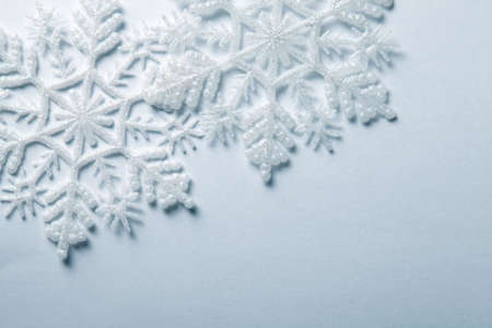 Snowflakes on a dark blue background. Christmas background. Flat lay, top view.