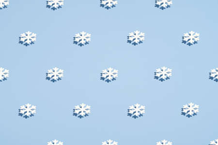 White snowflakes pattern on blue background. Christmas, winter holidays, New year concept. Minimal style.