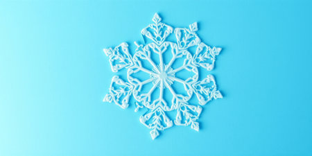 A stunning white snowflake showcases intricate patterns against a vibrant blue background, symbolizing winter beauty and seasonal joy.