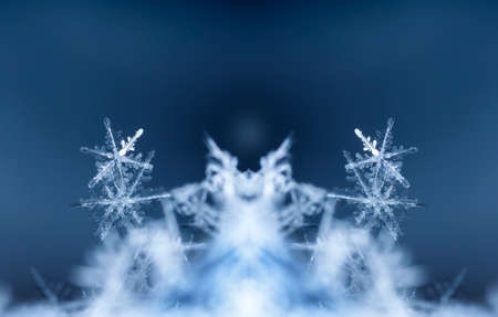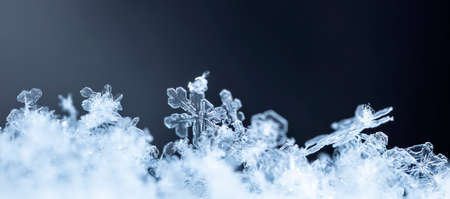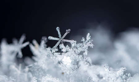 Snowflakes on a black background. Macro shooting with shallow depth of field.