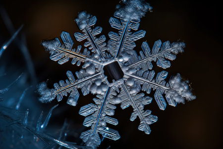 Intricate snowflake against a dark backdrop a close up of nature s unique crystallization