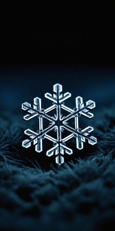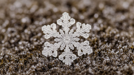 A stunning close-up of a snowflake resting on a textured surface, showcasing the intricate details and beauty of winter's natural artistry.