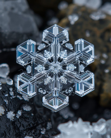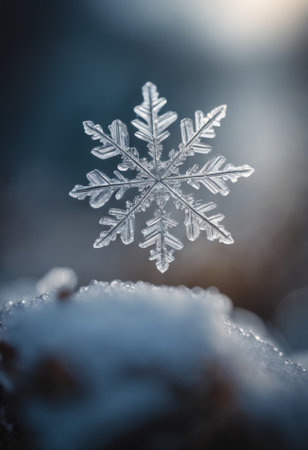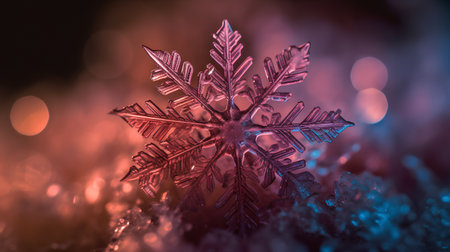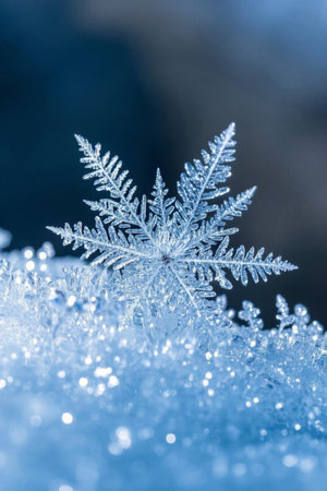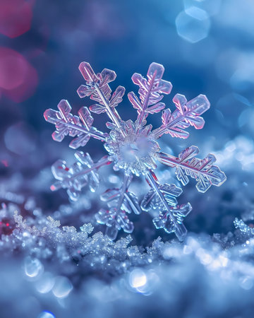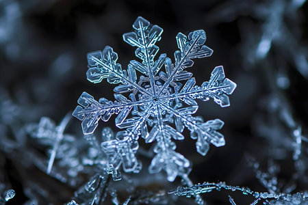 Intricate snowflake crystal close-up