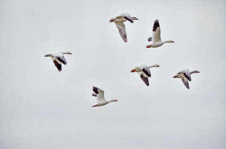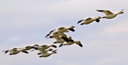 Snow geeses flying in formation