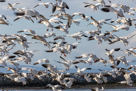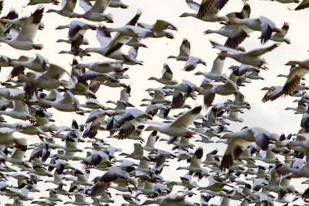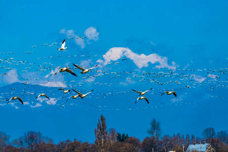 A view of so many Snow Geese flying together. Richmond BC Canada