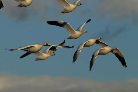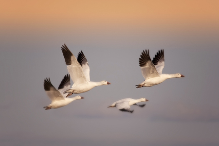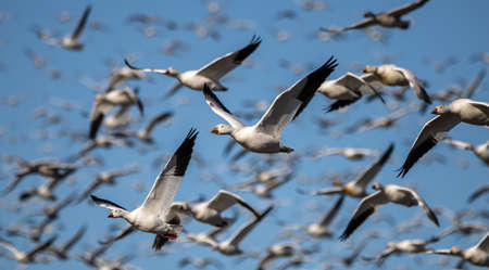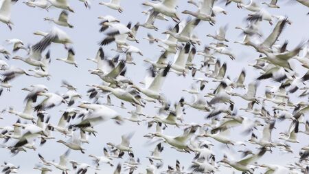 Flying Snow Geese with motion blur for background