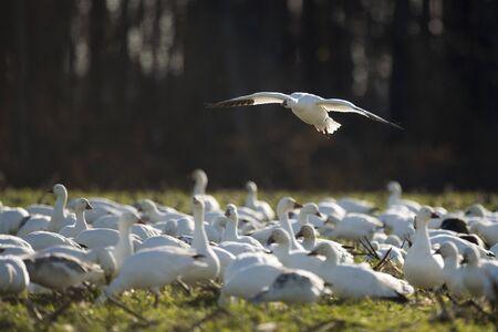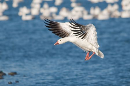 Flying landing snow goose