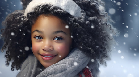 Portrait of beautiful african american girl in winter clothes.
