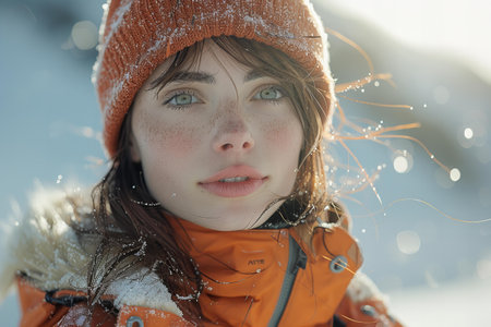 Radiant Young Woman Relishing Winter's Beauty Outdoors