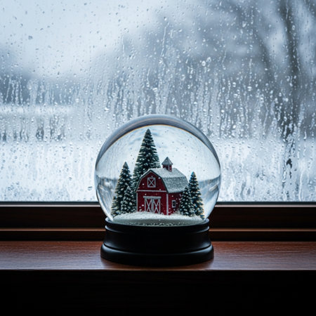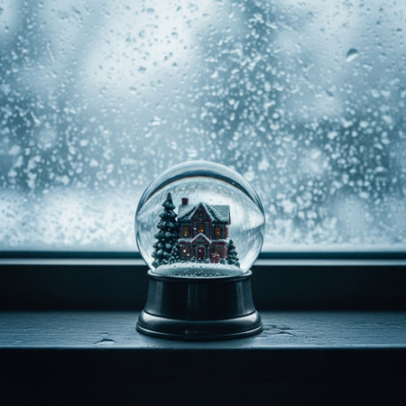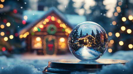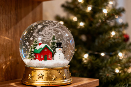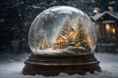 A beautifully crafted snow globe glimmers with swirling snowflakes, capturing the essence of a cozy Christmas night.