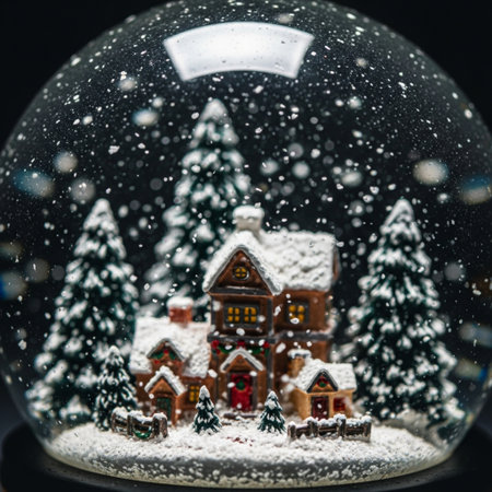 A captivating image of a Christmas snow globe featuring a miniature winter scene, sparkling lights, and a cozy atmosphere.