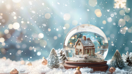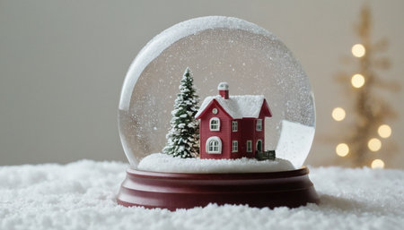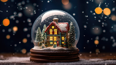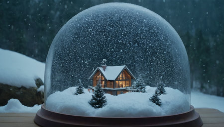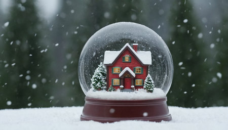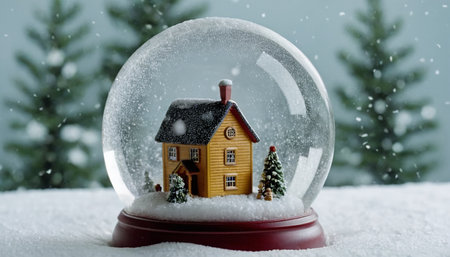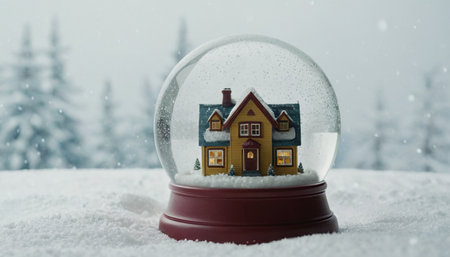 A charming snow globe featuring a cozy house surrounded by falling snowflakes, evoking a festive winter wonderland.