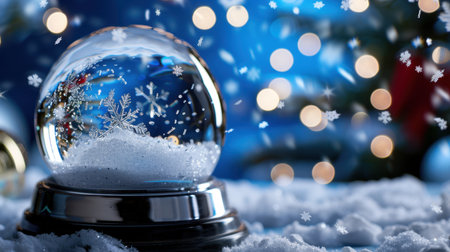A stunning snow globe featuring delicate snowflakes and a sparkling backdrop of Christmas lights. Perfect for capturing the essence of winter celebrations.