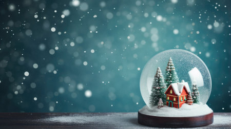 Snow globe stands on vibrant festive background, encapsulating wintry charm