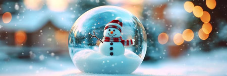 A captivating snow globe showcasing a charming winter village scene, illuminated by warm lights. Perfect for Christmas.