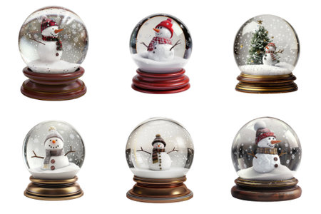 Six Snow Globes Featuring Snowmen and a Christmas Tree