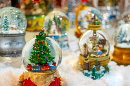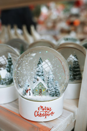 Christmas Market with Lots of Snow Globes.