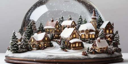 A magical snow globe depicting a winter village scene with falling snow, perfect for holiday-themed designs