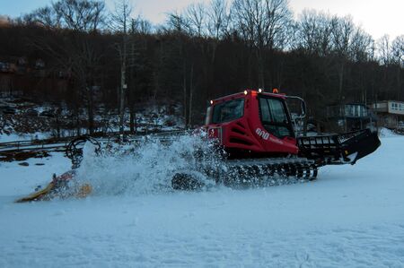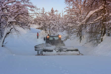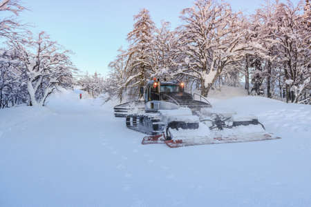 machine for snow preparation tractor on a mountainside, snow clearing and leveling