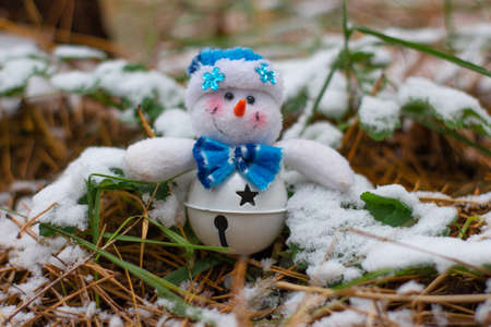 Snowman next to the New Year's tree. Snowman celebrate Christmas. good new year spirit