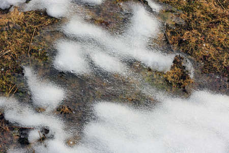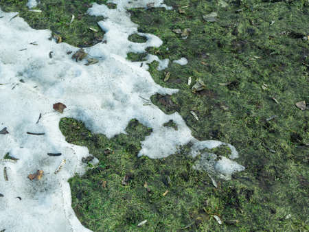 abstract natural background with melted snow on grass