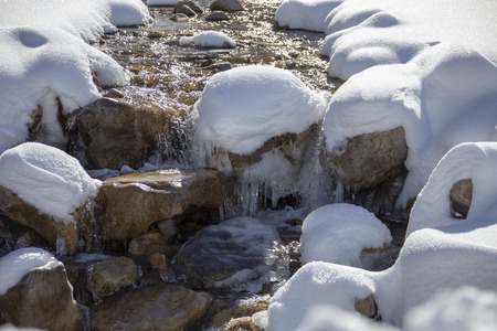 creek, ice and snow in winterscape