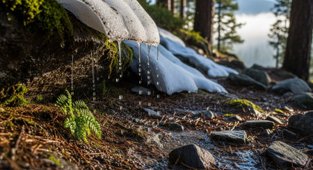 A captivating image of snow melting and revealing the vibrant landscape beneath