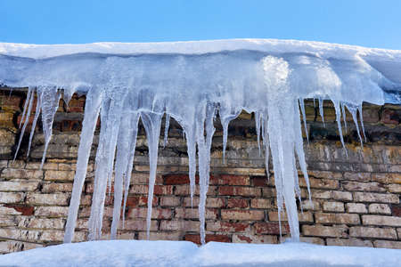 Row of big frosty icicles in nature.Row of big frosty icicles in nature. Icicles Background