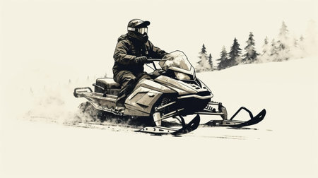 the snowmobile icon features intricate ink etching details, capturing the essence of winter adventure. the design is elegantly displayed on a clean white background, emphasizing the sleek and dynamic nature of the snowmobile. perfect for outdoor enthusiasts and winter sports enthusiasts. ai generated