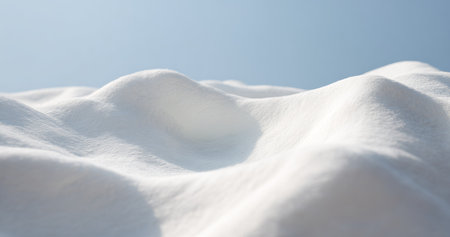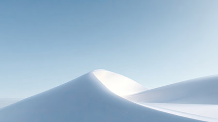 A tranquil landscape featuring smooth snow dunes that rise gracefully against a clear blue sky. The soft light enhances the serene beauty. Perfect for evoking peace and solitude.