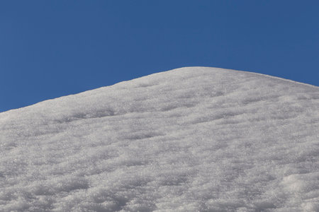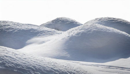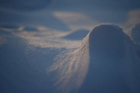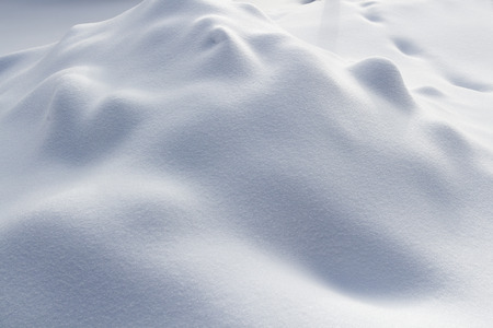 Perfect abstract texture of winter snow, mounds of frozen white snow. Wavy surface of a snowdrift. Abstract swirling snow design element