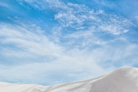 White snow on a background of blue winter sky. Copy space, blank for a design idea. The concept of a festive Christmas mood.