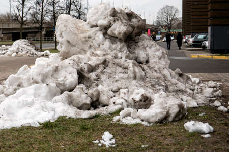 Dirty Melting Snow Pile in Urban Parking Lot Environmental Concept