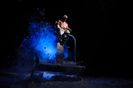 a person riding a snowmobile in a secluded setting is depicted in this blue nighttime hd wallpaper. the artwork, inspired by the style of akos major and thomas cole, showcases a dark gray and light bronze color palette. this 32k uhd image captures the thrill and beauty of winter adventures, reminiscent of national geographic photos. ai generated