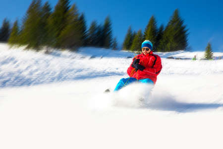 Winter Vacation, winter weekend, skiing ski mask snow sledding, recreation in the winter mountains, adrenaline, speed, nature beauty, enjoyment from the bustle of the city and work. Generative AI.