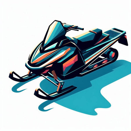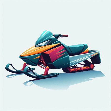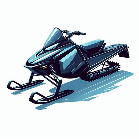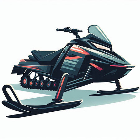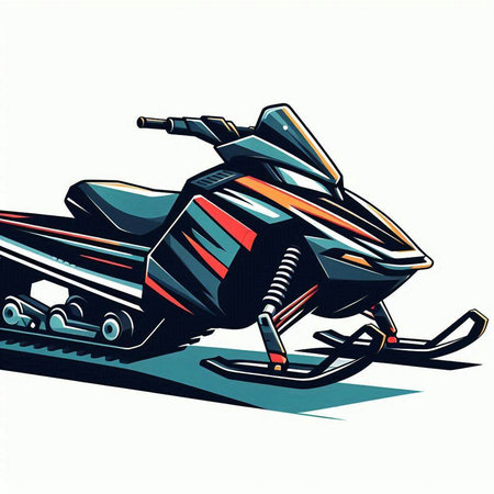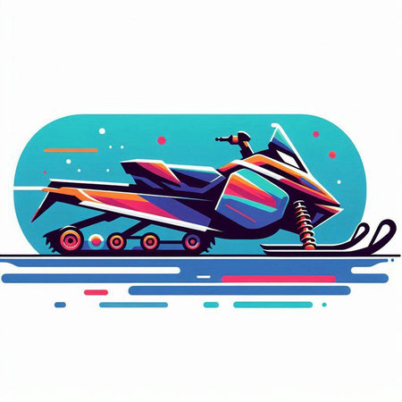 Snowboarder riding a snowmobile. Flat design vector illustration.