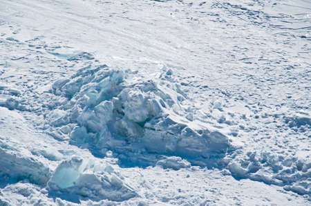 beautiful abstraction of blue and white snow and fragile ice and sunlight