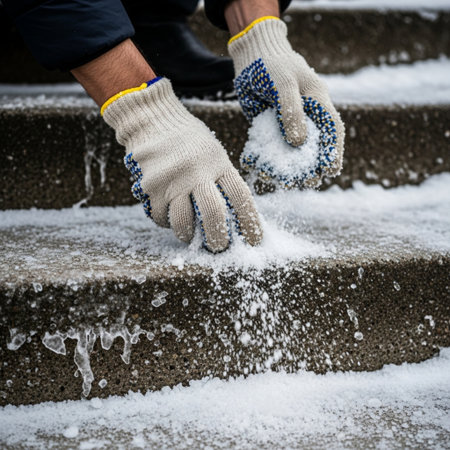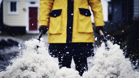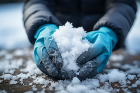 A detailed, editorial close-up photograph capturing the necessary action of winter maintenance: hand