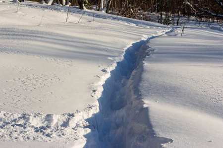 Seasonal, weather concept - female legs going on the deep snowdrifts