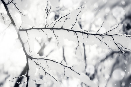 Branches in snow. New Year. Snowing. Winter Weather Christmass