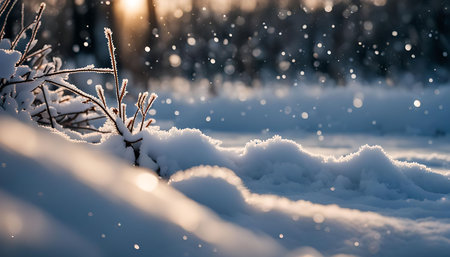 Sparkling Snow Cover on a Sunny Winter Day with Light Reflecting on the Surface AI