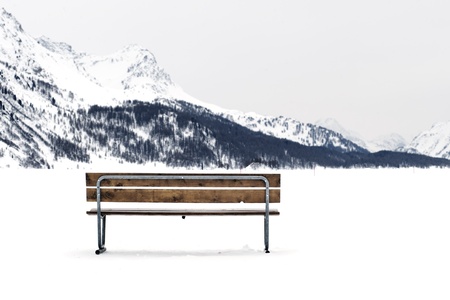 Winter landscape with bench Sils-Maria, SWITZERLAND