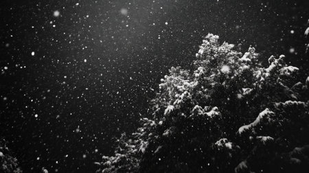 Overlay texture of snow creates a serene winter atmosphere against a dark background