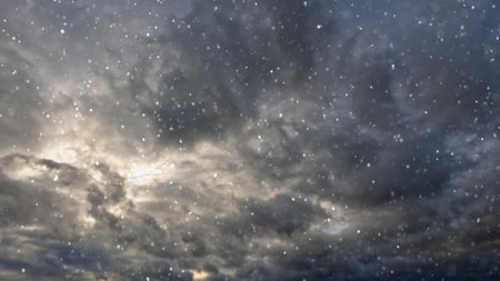 beautiful falling snow on clouds on sky backdrop - photo of nature