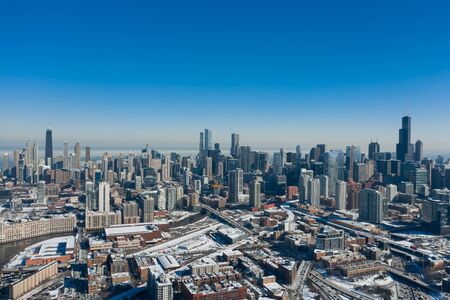 Aerial view of Chicago downtown during winter