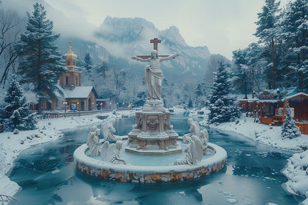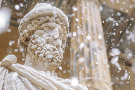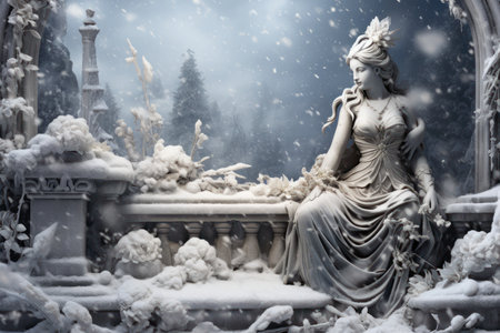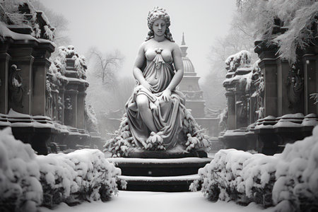 Snow-covered Statues and Monuments: Explore the contrast between historical or artistic structures and the wintery environment. - Generative AI