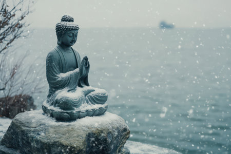 Buddha snow covered, Ai generated image