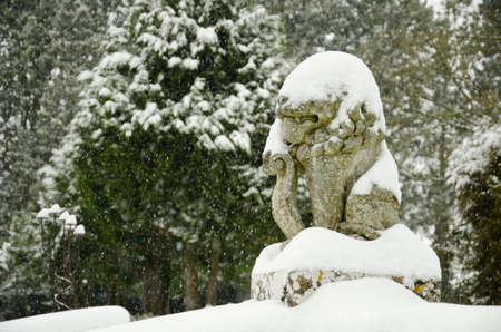 Ancient Statue Covered in Snowflakes