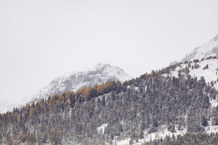 Photo depicting a beautiful moody frosty landscape European alpine mountains